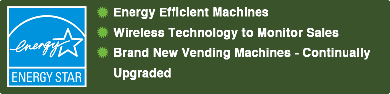 With our "green" technology, our Energy Star rated machines are on energy efficient mode at all times. They are equipped with energy-saving LED lighting and motion sensors which equates to 65% less energy consumption.